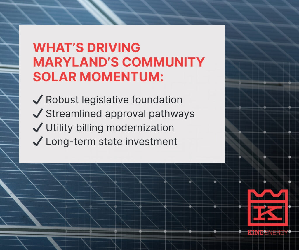 King Energy’s model supports the broader goals embedded in Maryland’s community solar program. By serving commercial tenants, small businesses, and local subscribers, projects create shared economic value while aligning with the state’s focus on affordability and local energy generation. King Energy’s long-term ownership model ensures systems are actively monitored, optimized, and maintained throughout their operating life.